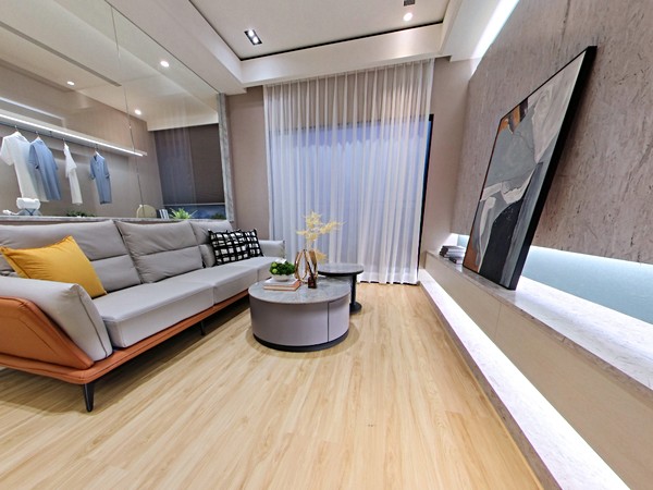 建案主力產品為2-3房,接待中心備有樣品屋可供參觀,住戶已入住並成立管委會。