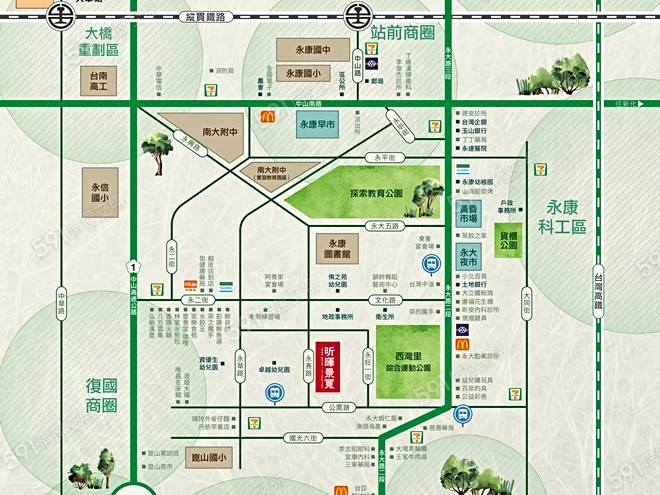 環境:「昕暉景寬」位於台南市永康區,鄰近永大商圈、崑山商圈及大灣商圈,生活機能佳。
