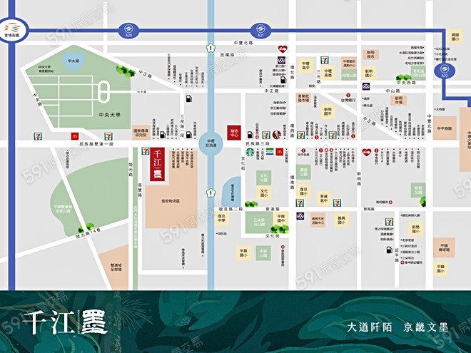 交通:「滙盈千江墨」距離國道一號新屋交流道約車行4分鐘,可快速串連各大都會區。社區規劃:戶戶邊間、梯戶比1:2,出入單純且生活寧靜。