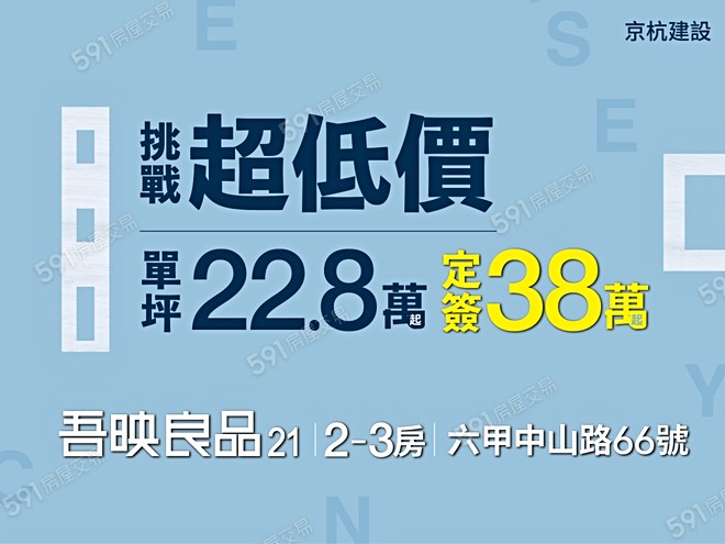 建案介紹:台南市吾映良品21,22.8萬/坪,建案地址台南市六甲區中社段,更多吾映良品21最新動態、開箱評價,請諮詢電話(0972-528-588轉89939)。