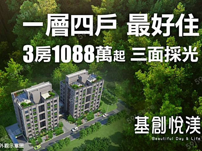 位置:「基創悅渼」基地位於重劃區內,棋盤式街廓、道路筆直,且周邊多綠地,居住環境舒適。社區規劃:戶戶無共用牆面,減少鄰居互相干擾。