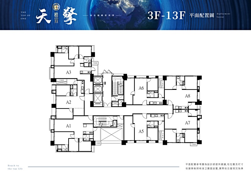 「柏宣天擎」位於桃園市中壢區文化路27號,由柏宣建設股份有限公司投資興建,基地面積432.27坪,樓層規劃為1棟地上24層,地下4層建築,共有148戶住家,1戶店面,車位共規劃88個平面車位,車位配比1:0.59,車位配比不足以一戶一車位。公設比36%,公共設施有接待大廳、信箱區。住宅標準平面層規劃,單層7併3梯,梯戶比1:2.33,尖峰時間等待電梯不會太久。格局坪數規劃2房(27~29坪)、3房(39~42坪),其中A1/A3戶為相似格局,邊間三面採光,A5/A6戶為相似二房,明廳明房,A7/A8戶為對稱二房,開放式廚房。