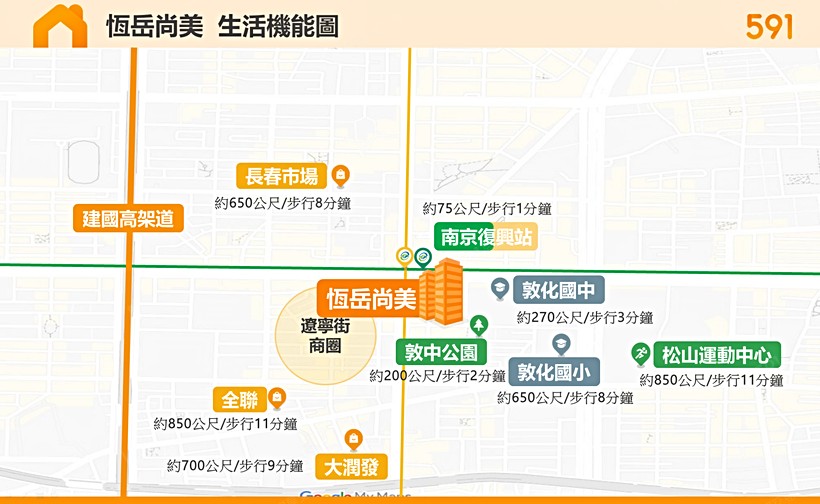 學校:步行約8分鐘到敦化國小,步行約3分鐘達敦化國中。