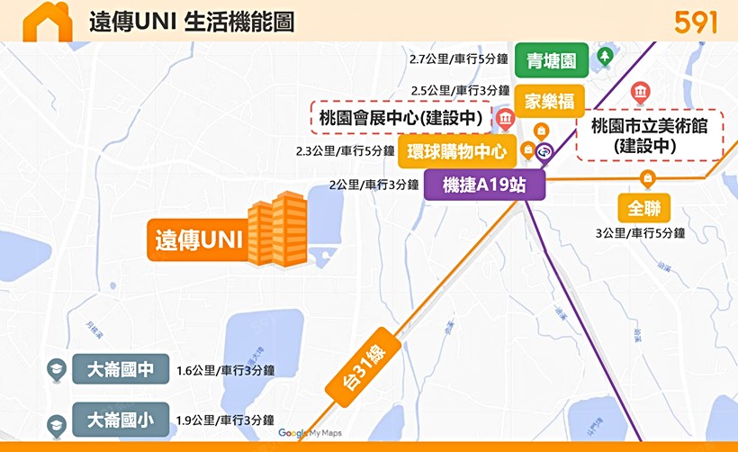 區域重大發展規劃:桃園會展中心規劃設置國際會議中心、展覽館及相關附屬服務設施,預計在明年完工;桃園市立美術館&兒童美術館,兩館將以空橋連接,設置多種展覽空間、美術圖書館、研究典藏空間及國際演講廳,預計於明後年完工,建設利多陸續完工後,亦能帶動周邊發展。