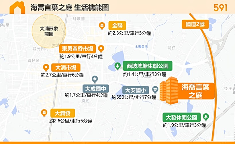 學校:距離學區大安國小約步行7分鐘,至大成國中約車行4分鐘。