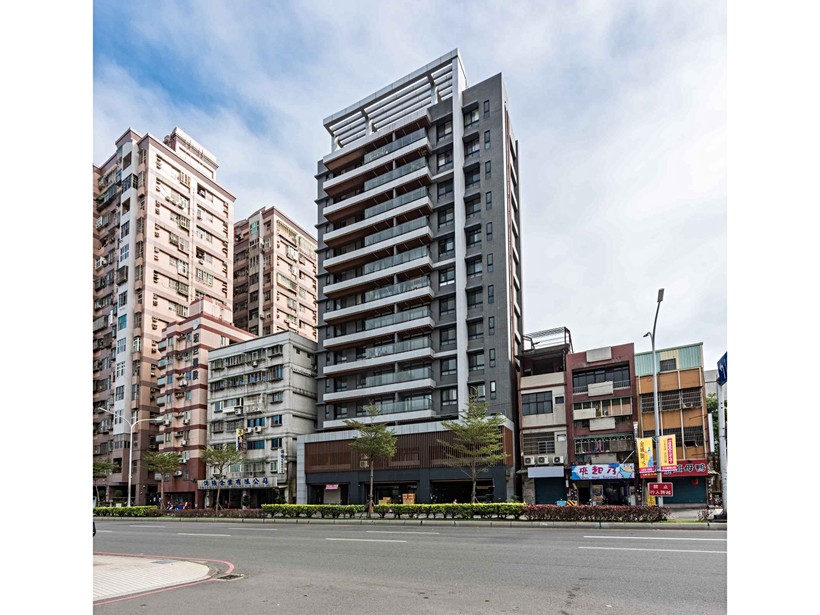 「傳家」基地位中正路幹道旁,基地面積194坪,規劃5棟地上13層、地下3層建築,全案共22戶住家、4戶店面,屬於小社區,車位為機械式25個,車位配比1:0.96,社區公設規劃接待大廳,公設比32%。