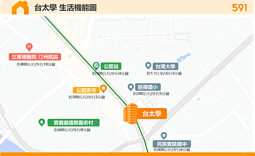 大眾運輸機能方面,步行4分鐘可到捷運公館站。