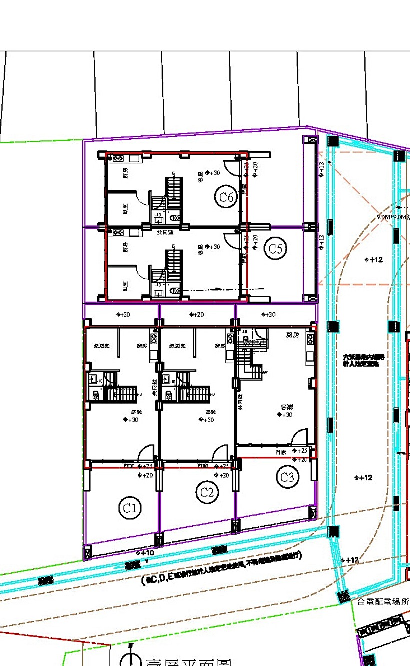社區規劃:5戶其中兩戶與三戶門戶分開,缺乏社區凝聚性。